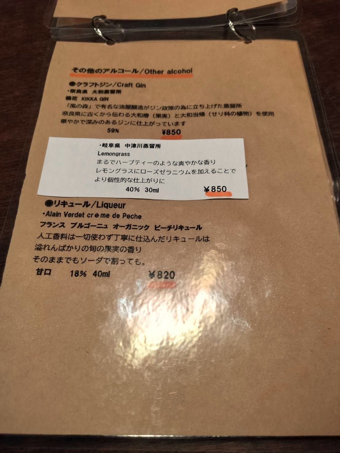 • ドリンク: グラスワイン 980円〜、レモングラスジン 850円、ソフトドリンク 600円〜